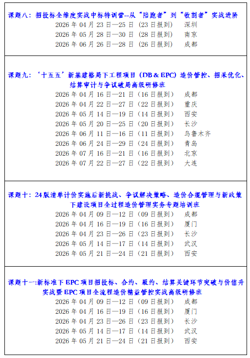 下一篇:‘十五五’新基建格局下工程项目(DB & EPC)造价管控、招采优化、结算审计与争议破局研修班